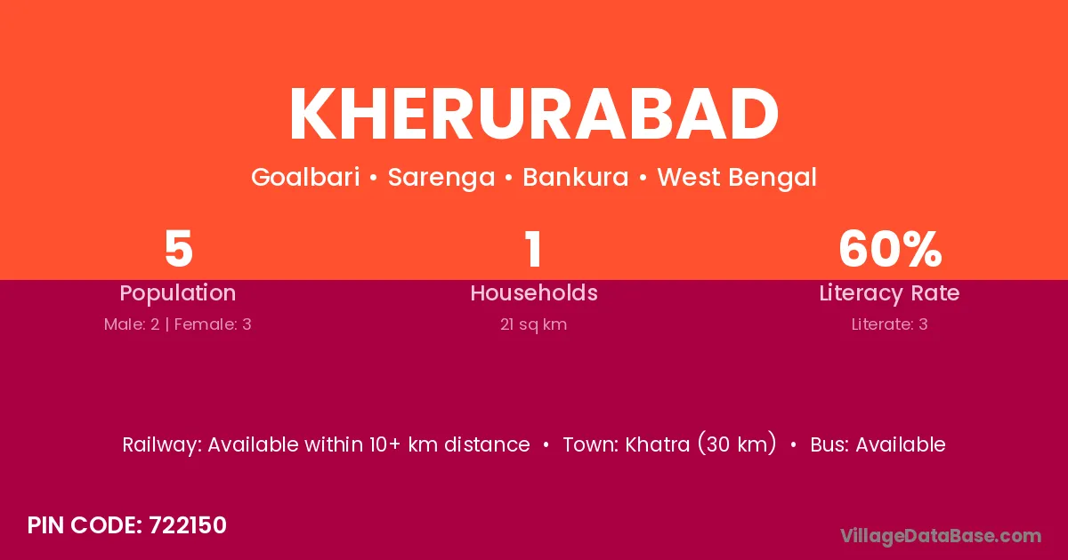 Kherurabad village has a total population of 5 people, of which 2 are males and 3 are females.