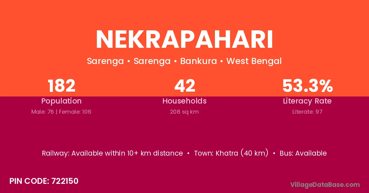 Khatra (40 km) is the nearest town to Nekrapahari village for major economic activities and is located approximately 40 km away.