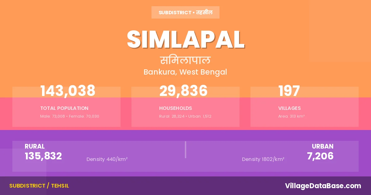 Simlapal is a town and Subdivision in the Bankura district of the West Bengal. In India, a Subdivision is a subdivision of a district responsible for the administration and revenue collection of a specific area within the district. Subdivisions play a crucial role in the local governance structure, contributing significantly to the development and administration of their communities.