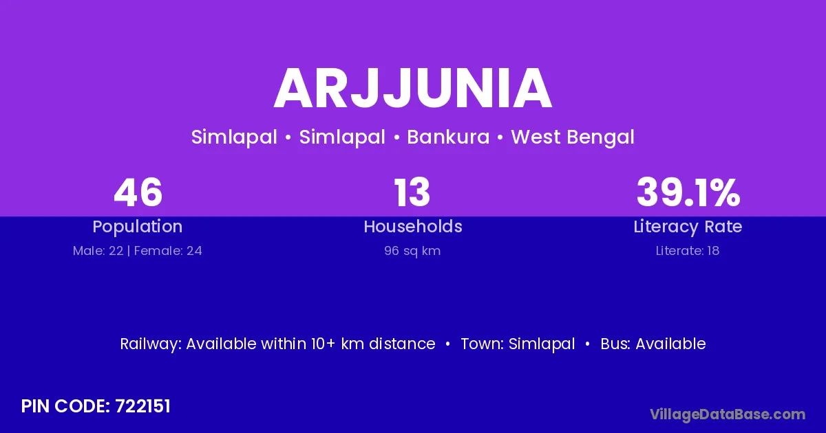 According to Census 2011 information, the village code of Arjjunia village is 722151.