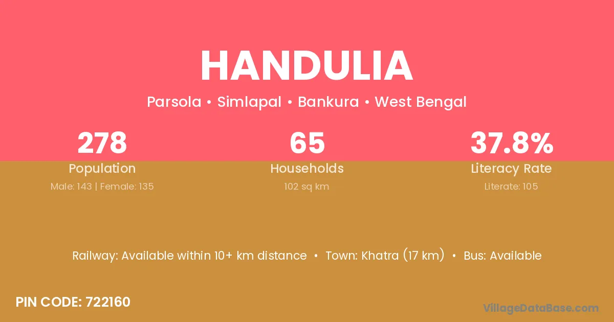 Khatra (17 km) is the nearest town to Handulia village for major economic activities and is located approximately 17 km away.