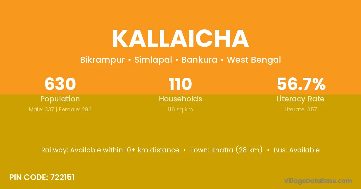 Khatra (28 km) is the nearest town to Kallaicha village for major economic activities and is located approximately 28 km away.