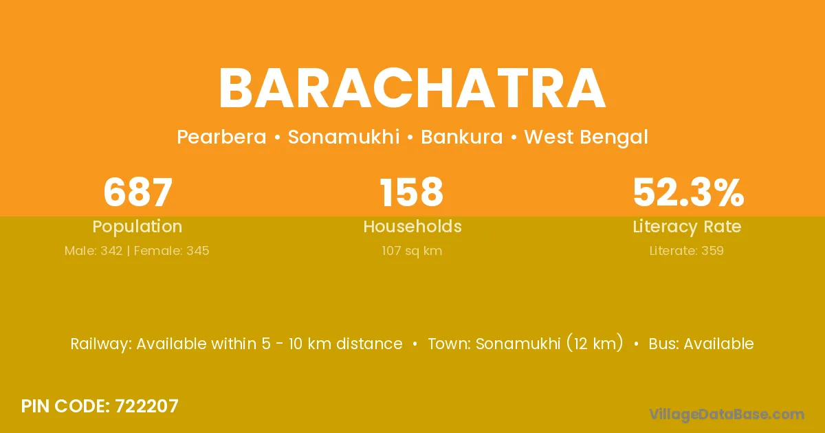 Sonamukhi (12 km) is the nearest town to Barachatra village for major economic activities and is located approximately 12 km away.