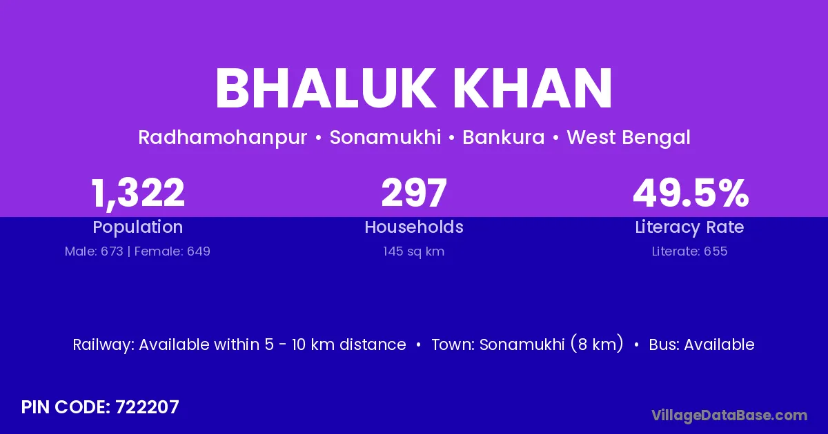 Sonamukhi (8 km) is the nearest town to Bhaluk Khan village for major economic activities and is located approximately 8 km away.