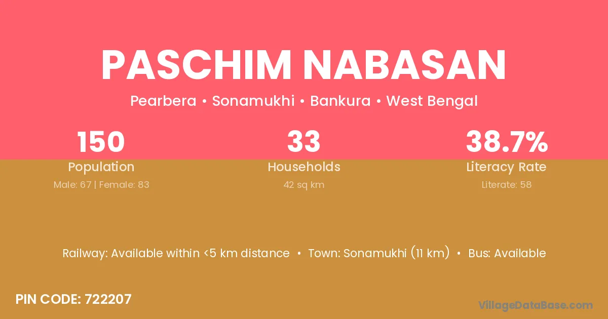 Sonamukhi (11 km) is the nearest town to Paschim Nabasan village for major economic activities and is located approximately 11 km away.
