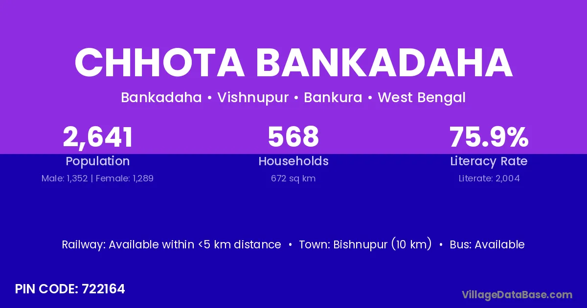 Bishnupur (10 km) is the nearest town to Chhota Bankadaha village for major economic activities and is located approximately 10 km away.