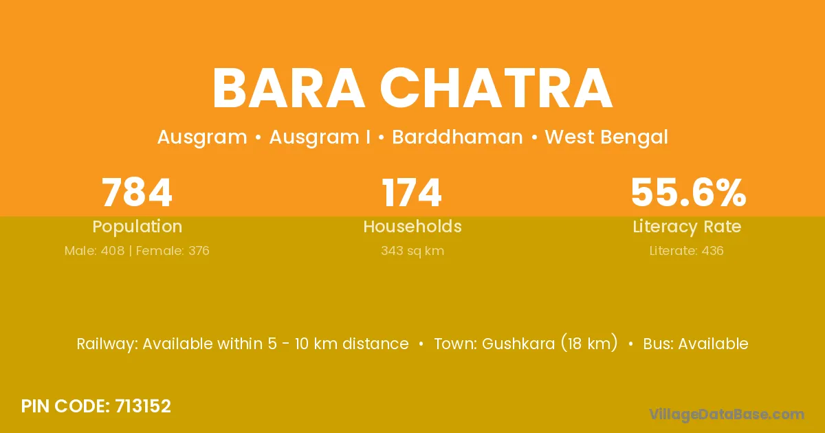 Gushkara (18 km) is the nearest town to Bara Chatra village for major economic activities and is located approximately 18 km away.