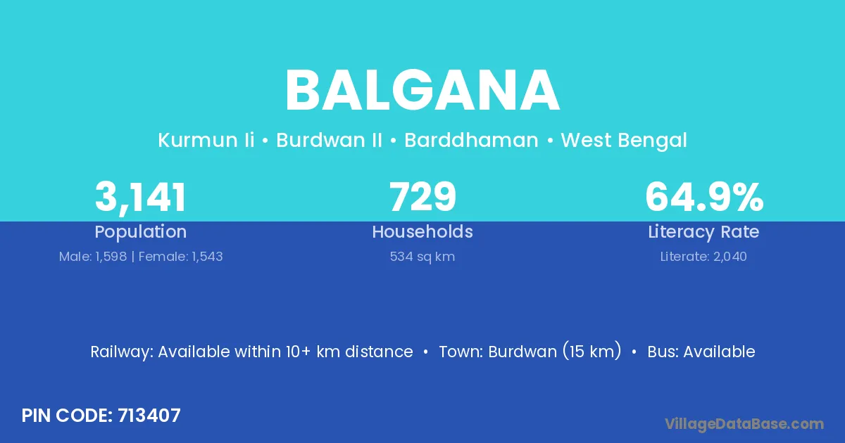 Burdwan (28 km) is the nearest town to Balgana village for major economic activities and is located approximately 28 km away.