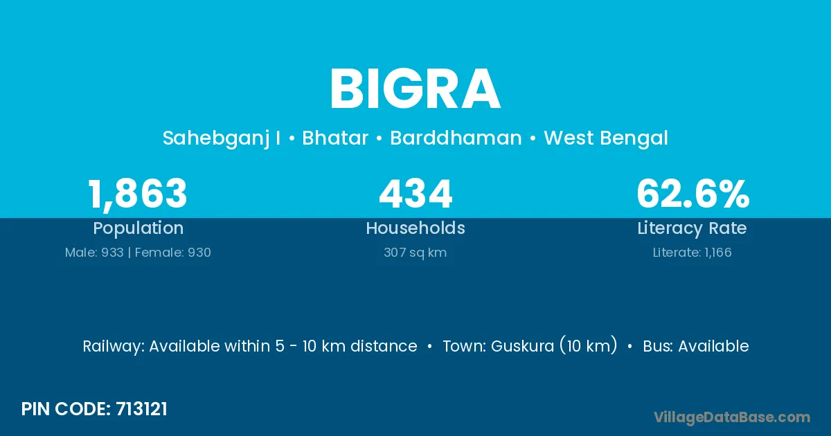 Guskura (10 km) is the nearest town to Bigra village for major economic activities and is located approximately 10 km away.