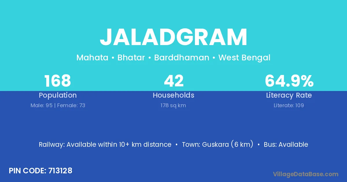 Guskara (6 km) is the nearest town to Jaladgram village for major economic activities and is located approximately 6 km away.