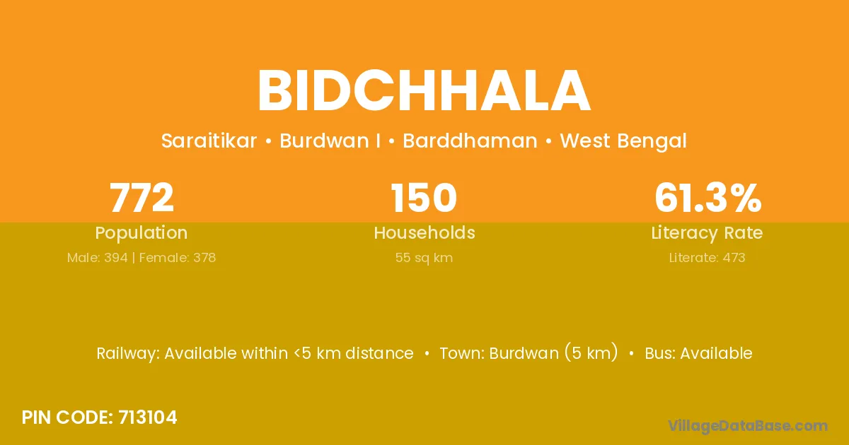 Burdwan (5 km) is the nearest town to Bidchhala village for major economic activities and is located approximately 5 km away.