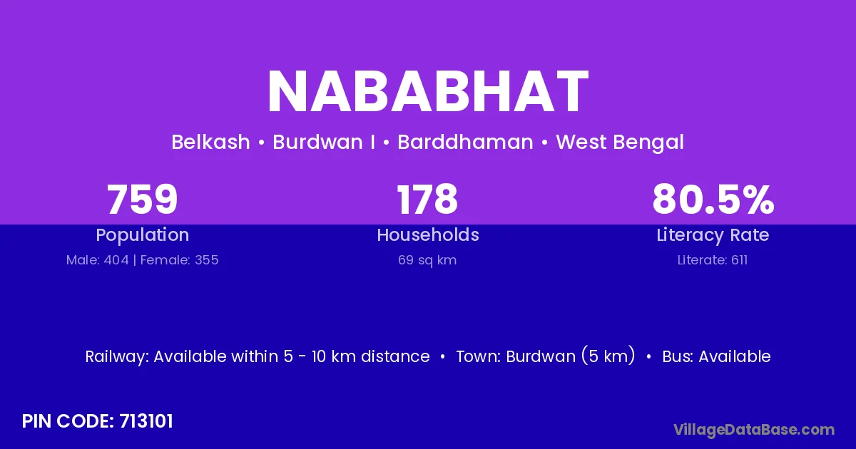 Burdwan (5 km) is the nearest town to Nababhat village for major economic activities and is located approximately 5 km away.