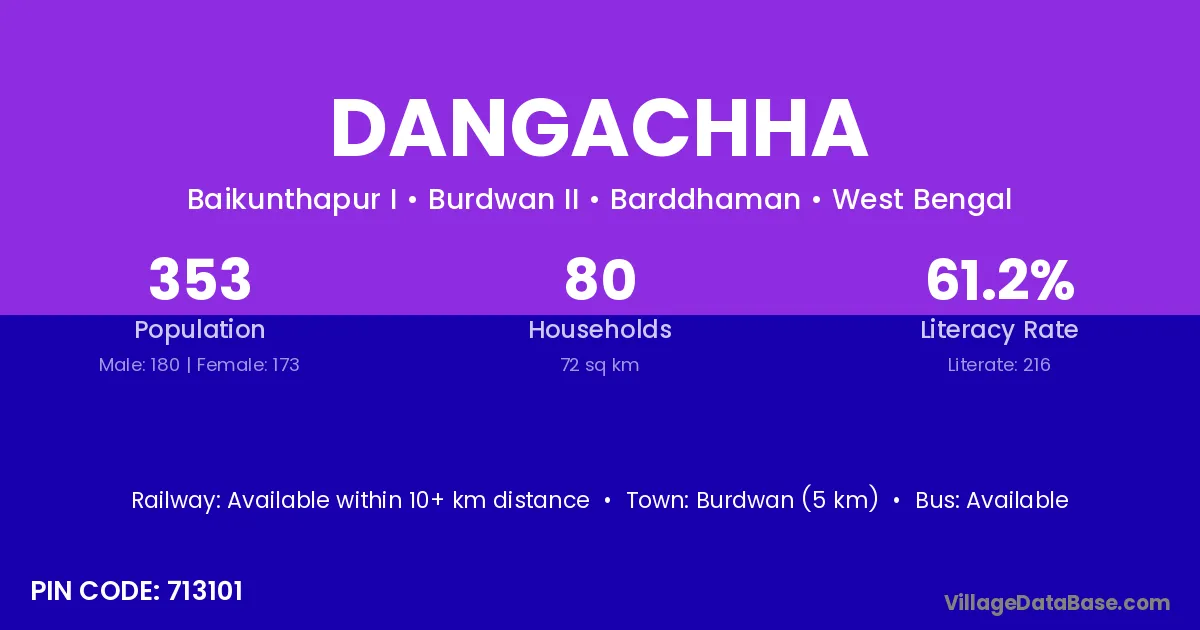 Burdwan (5 km) is the nearest town to Dangachha village for major economic activities and is located approximately 5 km away.