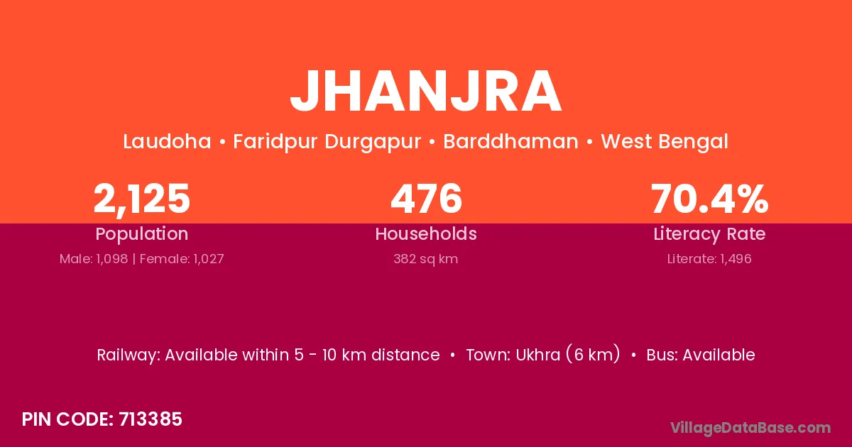 Ukhra (6 km) is the nearest town to Jhanjra village for major economic activities and is located approximately 6 km away.