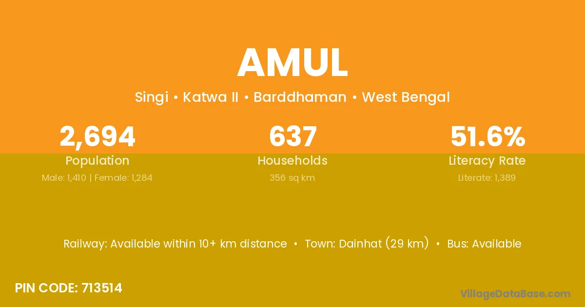 According to Census 2011 information, the village code of Amul village is 713514.