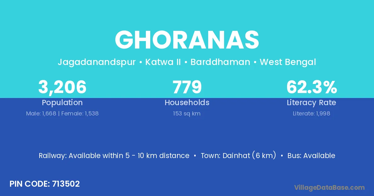 Dainhat (6 km) is the nearest town to Ghoranas village for major economic activities and is located approximately 6 km away.