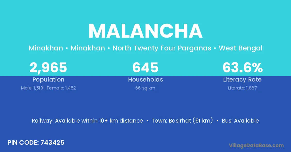 The literacy rate of Malancha village is 61.00%. Male literacy stands at 65.69% and female literacy at 56.18%.