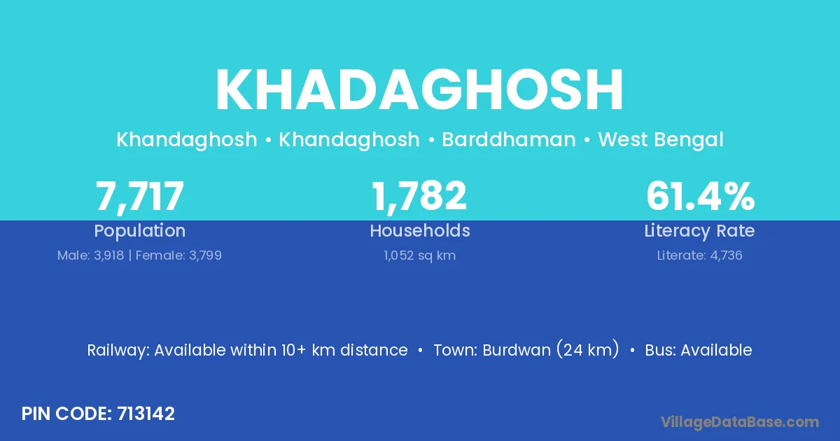 Burdwan (24 km) is the nearest town to Khadaghosh village for major economic activities and is located approximately 24 km away.