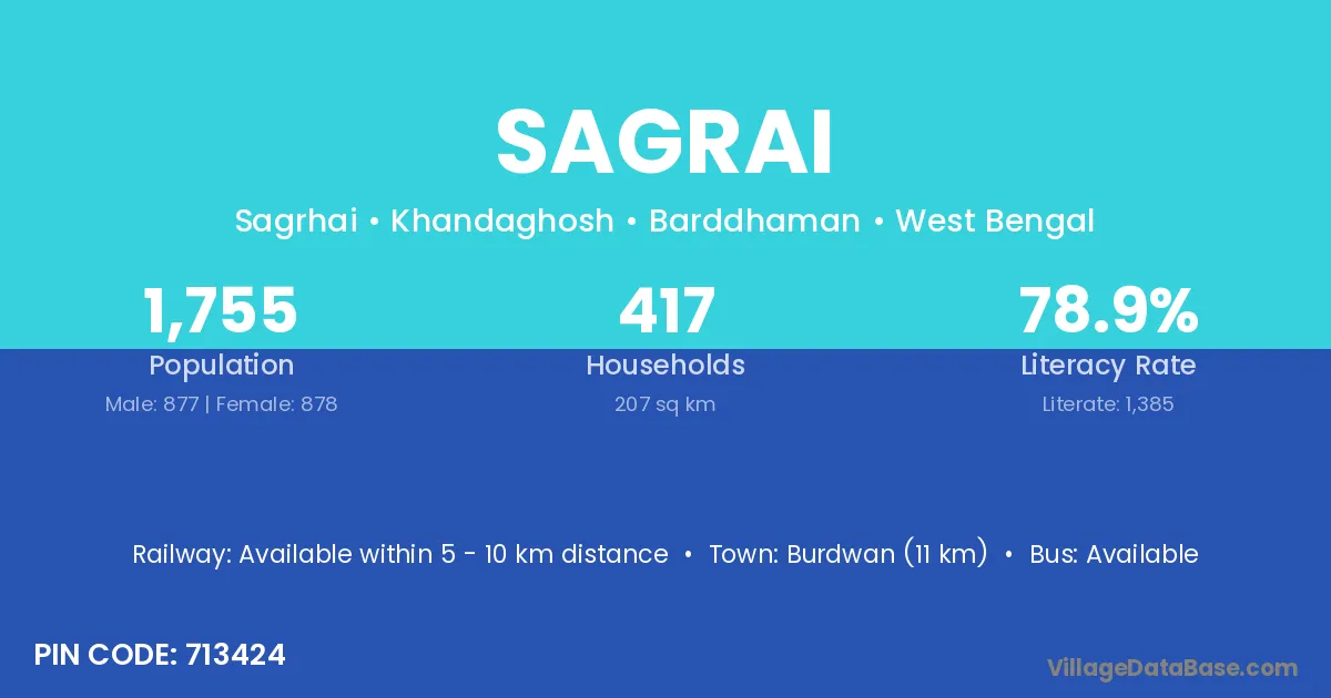 Burdwan (11 km) is the nearest town to Sagrai village for major economic activities and is located approximately 11 km away.