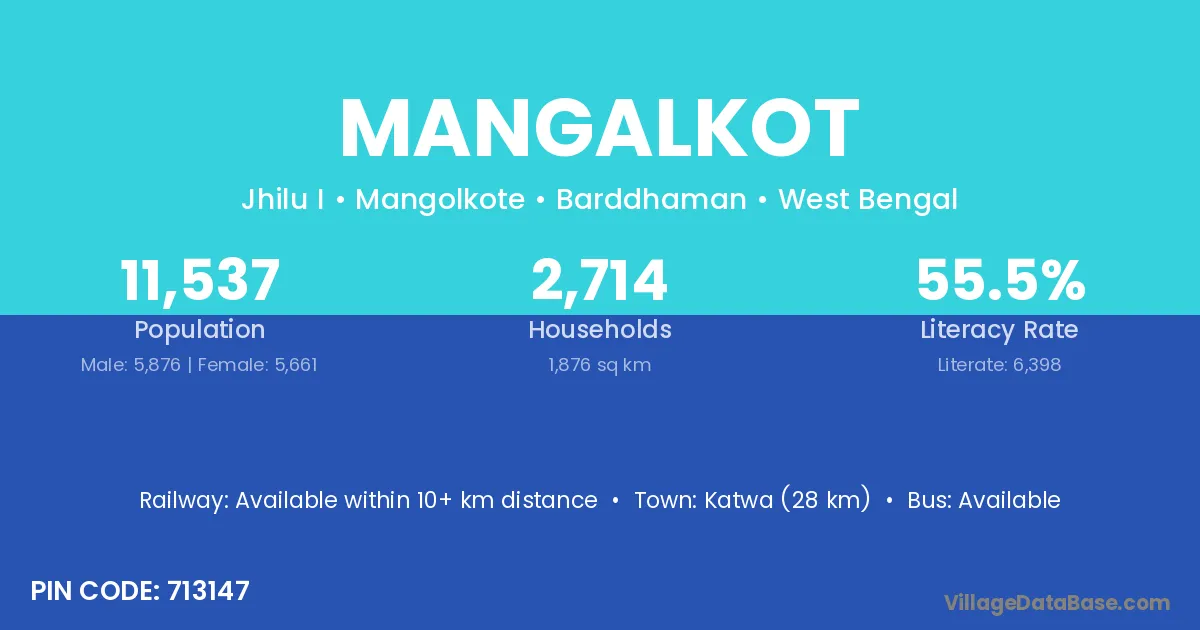 Katwa (28 km) is the nearest town to Mangalkot village for major economic activities and is located approximately 28 km away.