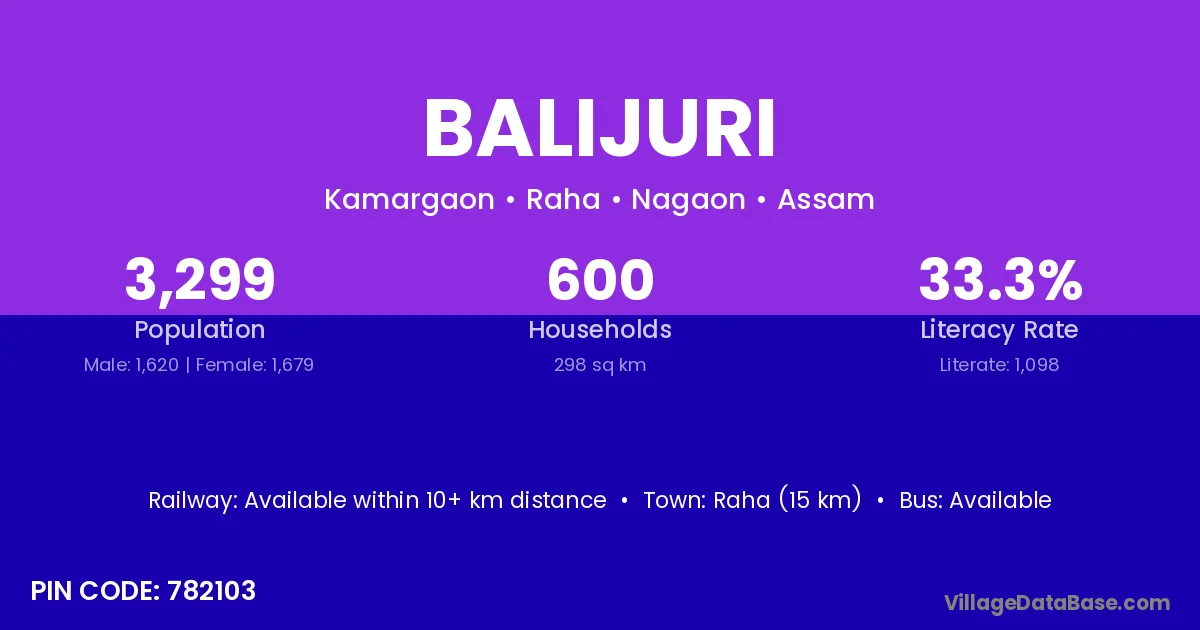 Bardhaman (40 km) is the nearest town to Balijuri village for major economic activities and is located approximately 40 km away.