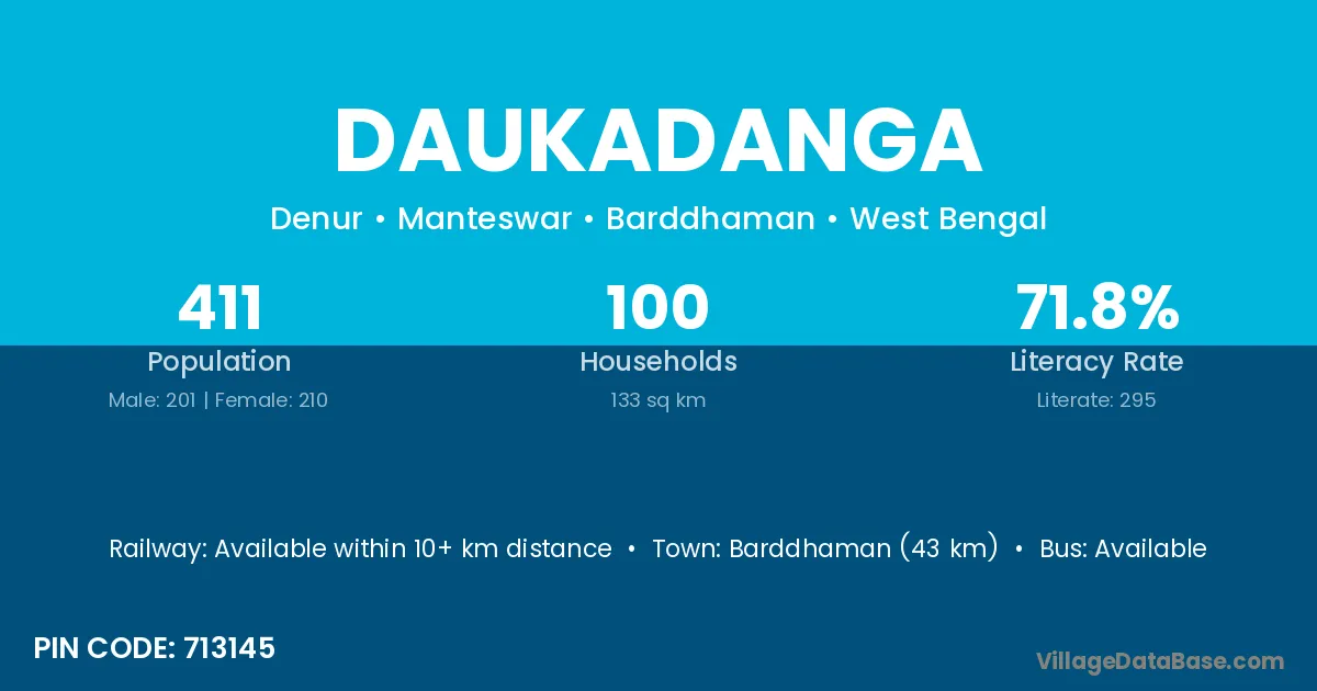 Barddhaman (43 km) is the nearest town to Daukadanga village for major economic activities and is located approximately 43 km away.