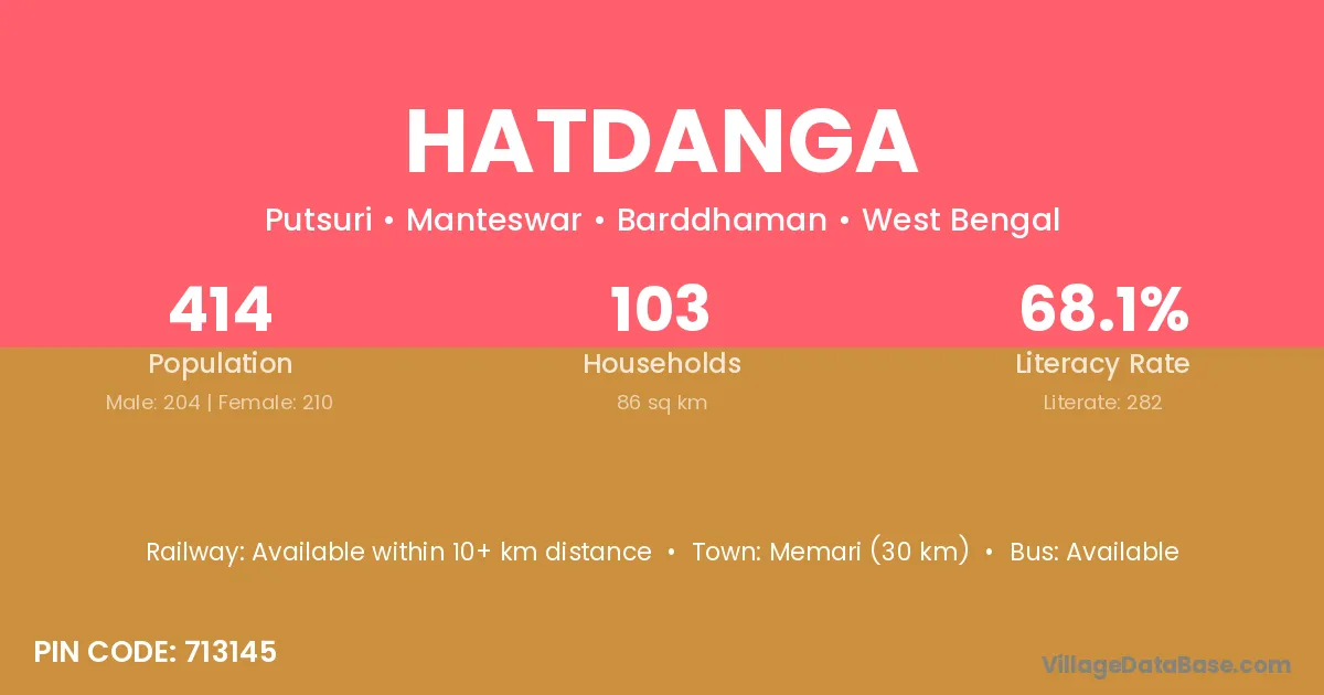 Memari (30 km) is the nearest town to Hatdanga village for major economic activities and is located approximately 30 km away.