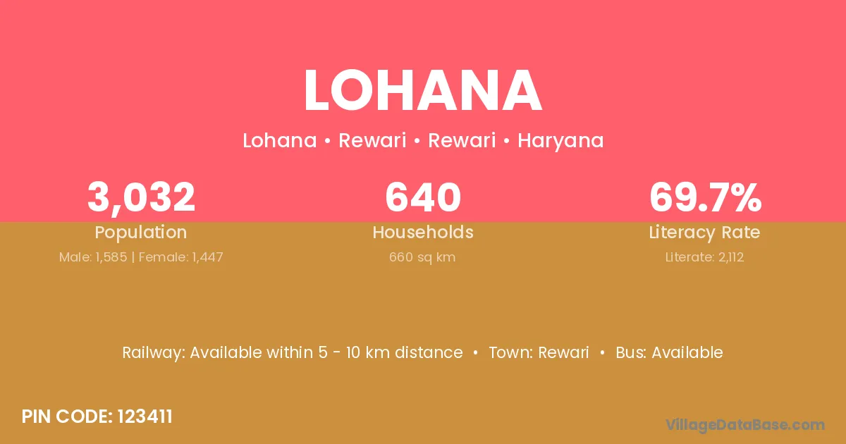 The literacy rate of Lohana village is 61.72%. Male literacy stands at 67.63% and female literacy at 55.94%.