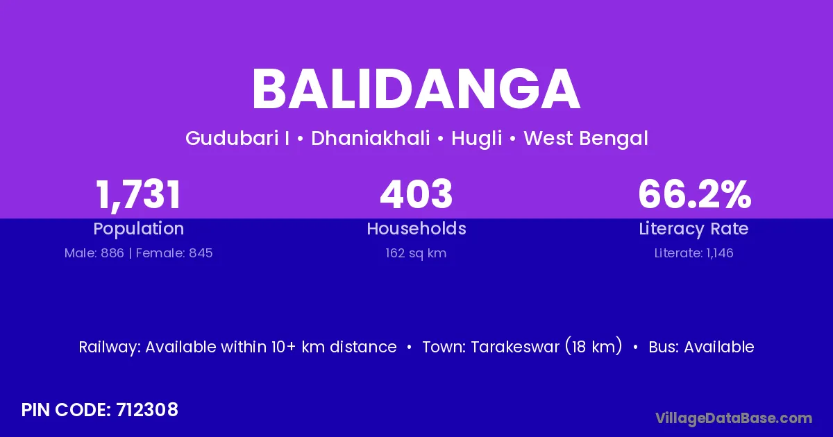 Memari (10 km) is the nearest town to Balidanga village for major economic activities and is located approximately 10 km away.