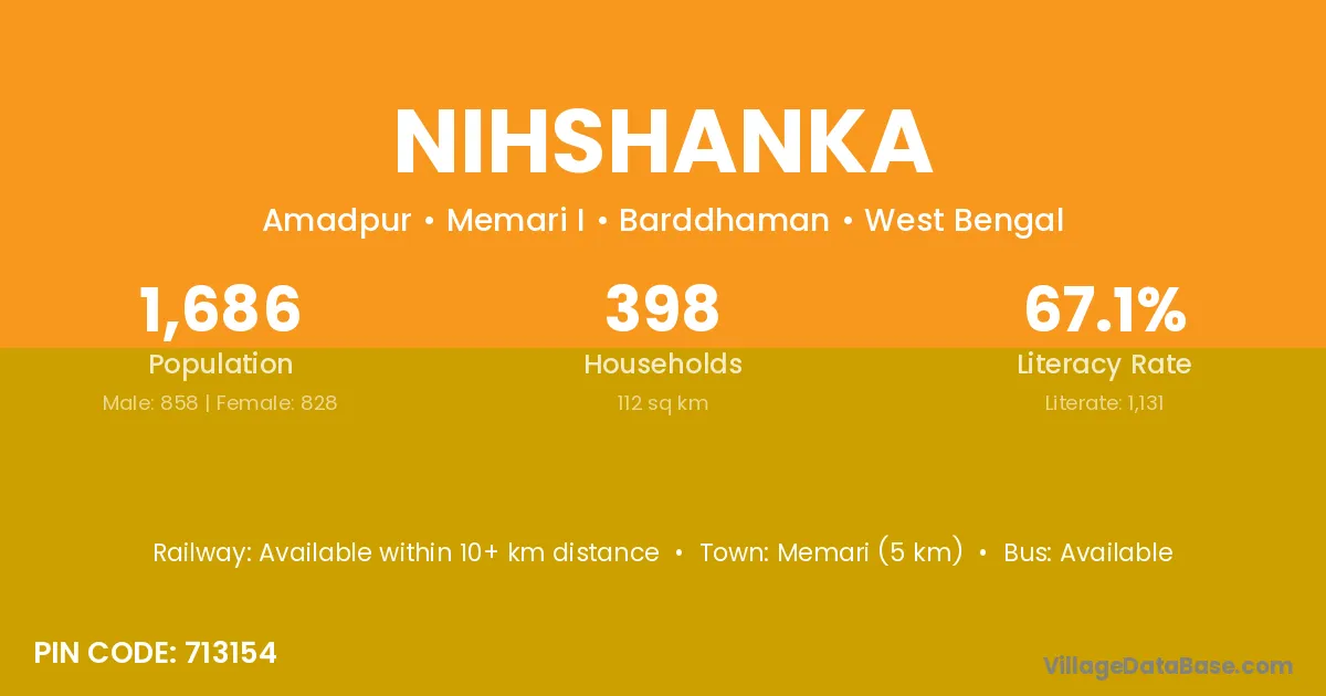 According to Census 2011 information, the village code of Nihshanka village is 713154.