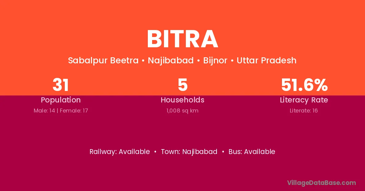 There are approximately 532 households in Bitra village.