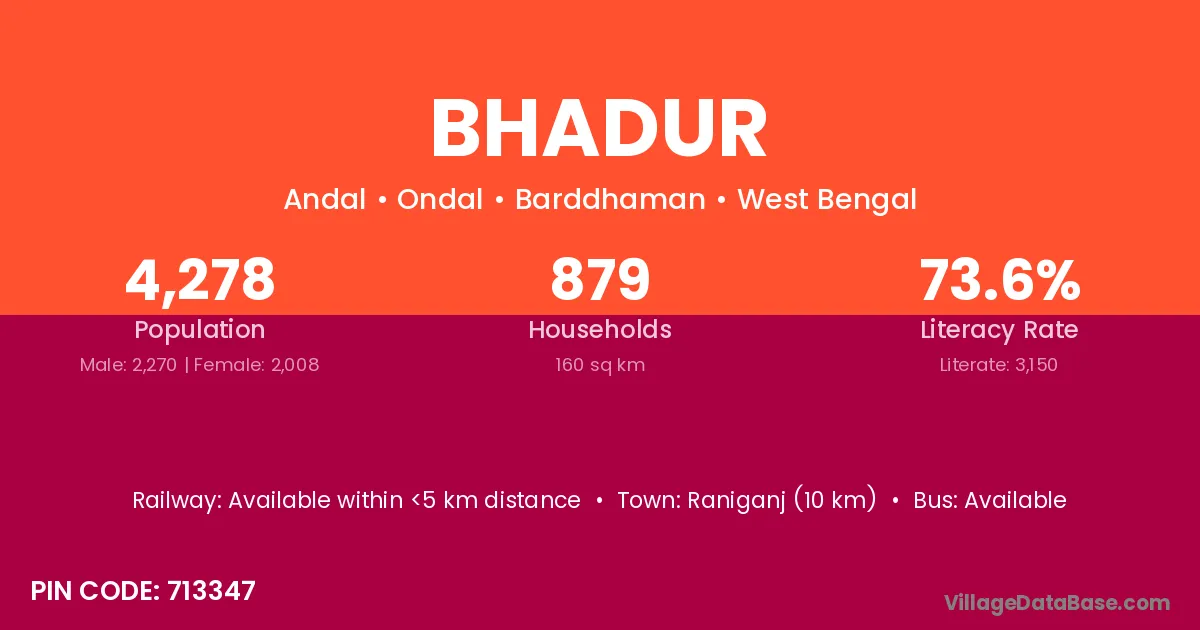 Raniganj (10 km) is the nearest town to Bhadur village for major economic activities and is located approximately 10 km away.