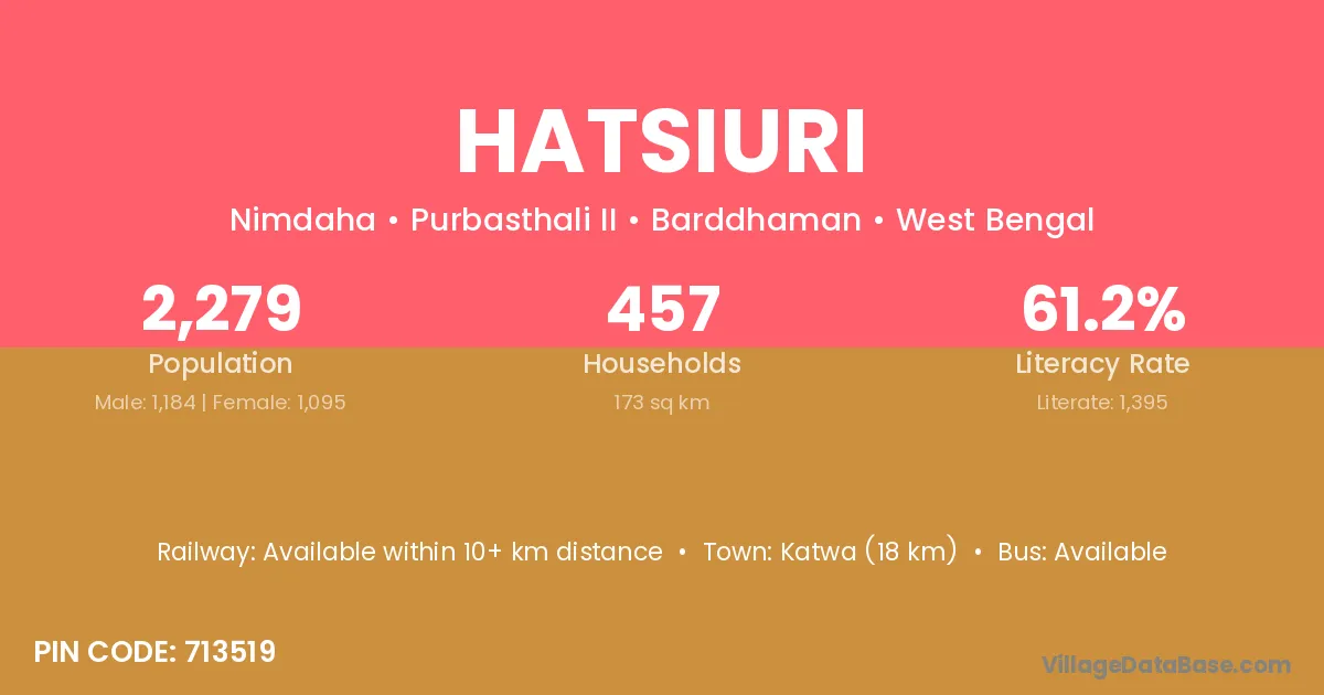 Katwa (18 km) is the nearest town to Hatsiuri village for major economic activities and is located approximately 18 km away.