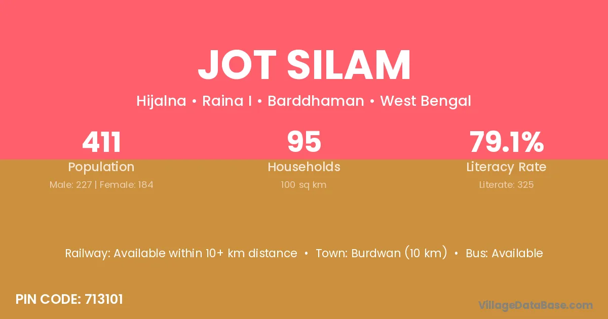 Burdwan (10 km) is the nearest town to Jot Silam village for major economic activities and is located approximately 10 km away.