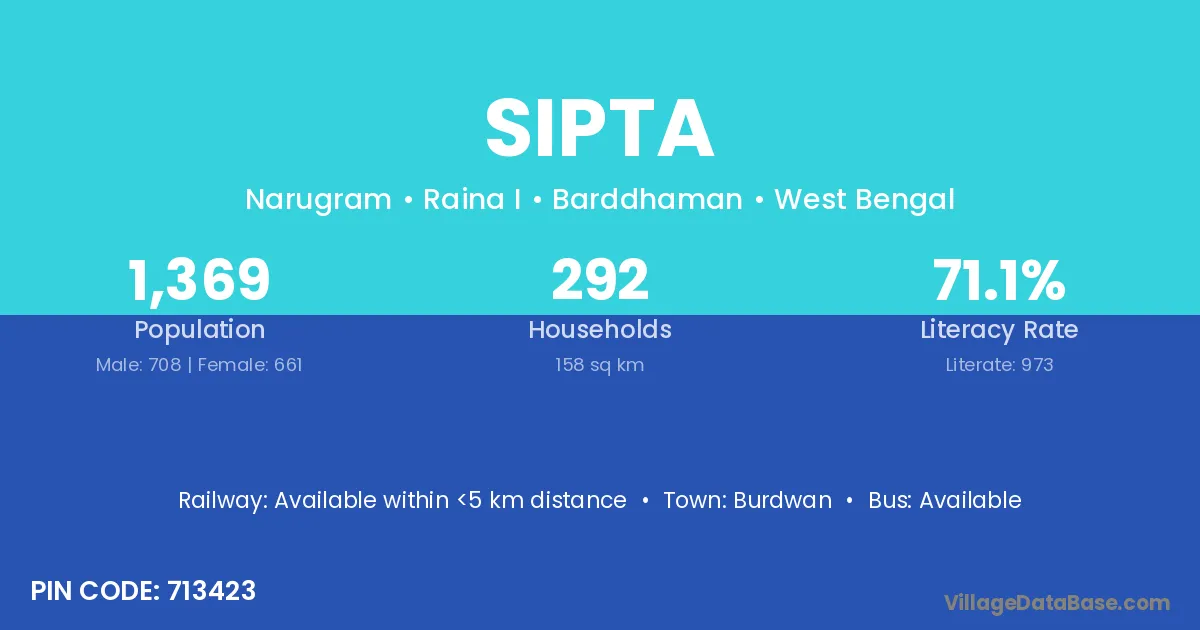Burdwan is the nearest town to Sipta village for major economic activities