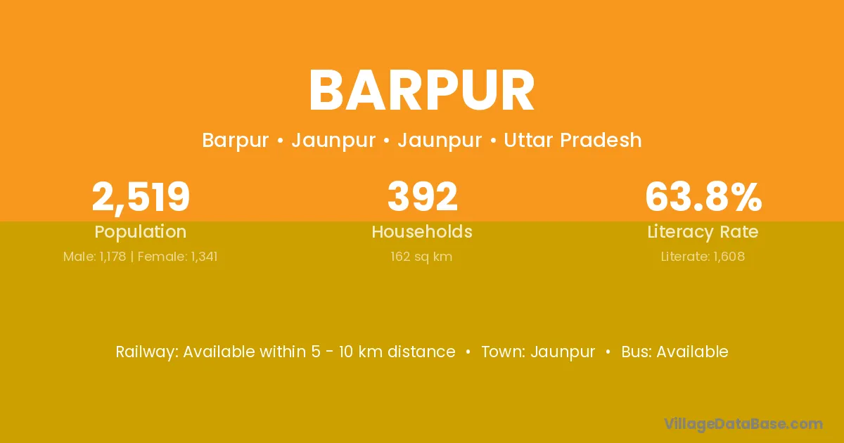 Burdwan (30 km) is the nearest town to Barpur village for major economic activities and is located approximately 30 km away.