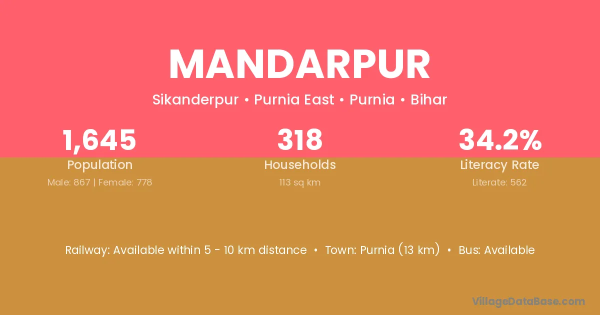 Mandarpur village has a total population of 500 people, of which 267 are males and 233 are females.