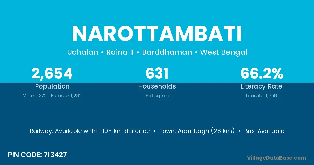 Arambagh (26 km) is the nearest town to Narottambati village for major economic activities and is located approximately 26 km away.