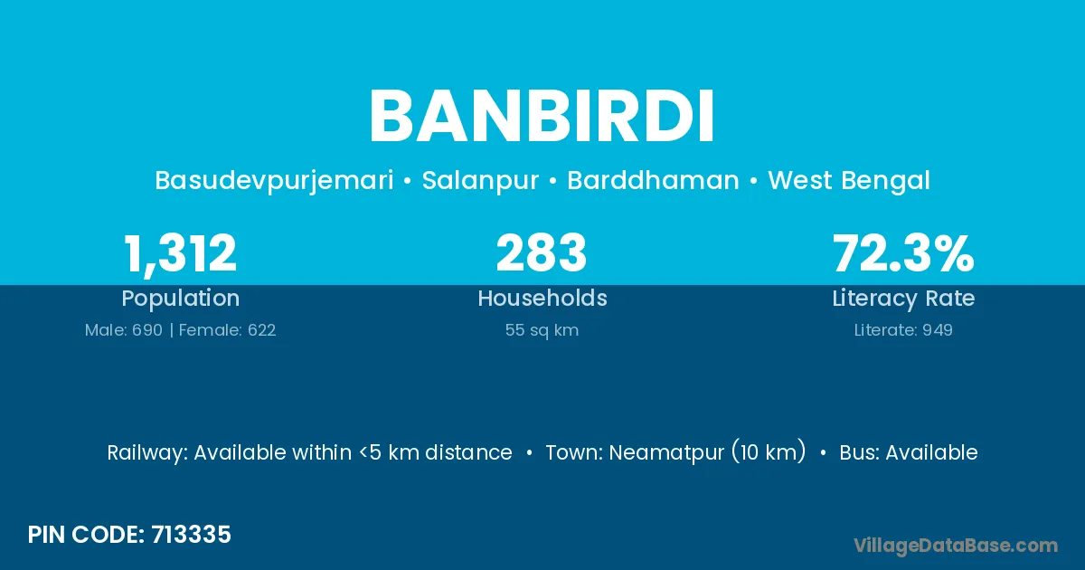 According to Census 2011 information, the village code of Banbirdi village is 713335.