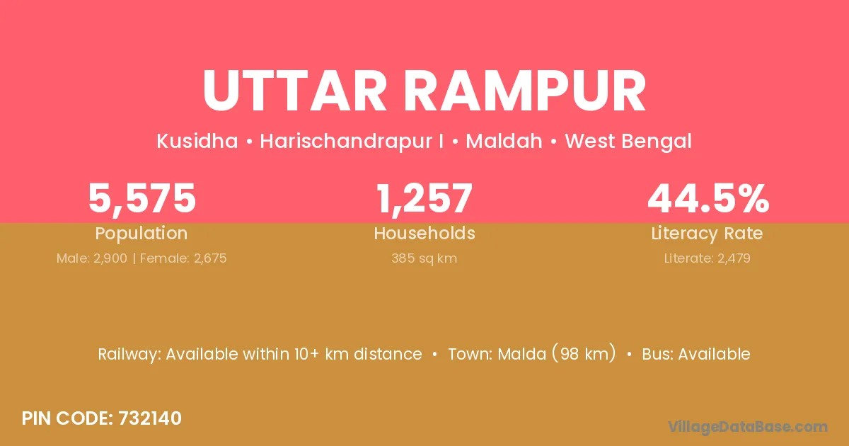 Asansol (10 km) is the nearest town to Uttar Rampur village for major economic activities and is located approximately 10 km away.