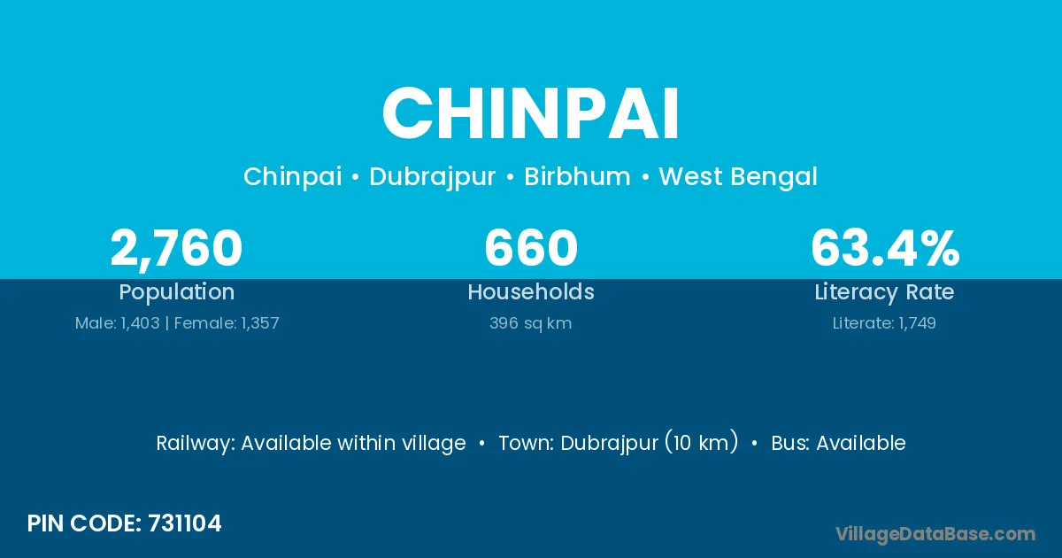 Dubrajpur (10 km) is the nearest town to Chinpai village for major economic activities and is located approximately 10 km away.