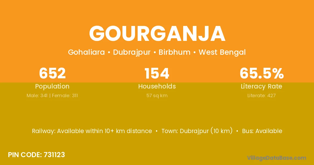 Dubrajpur (10 km) is the nearest town to Gourganja village for major economic activities and is located approximately 10 km away.