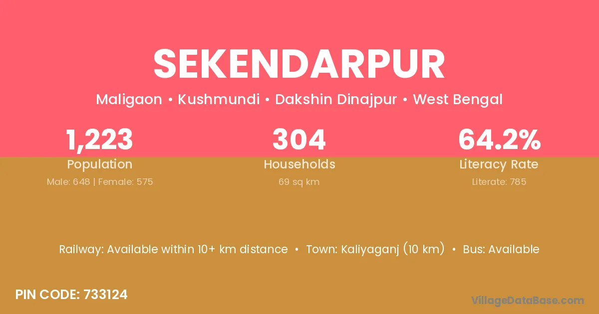 Dubrajpur (15 km) is the nearest town to Sekendarpur village for major economic activities and is located approximately 15 km away.