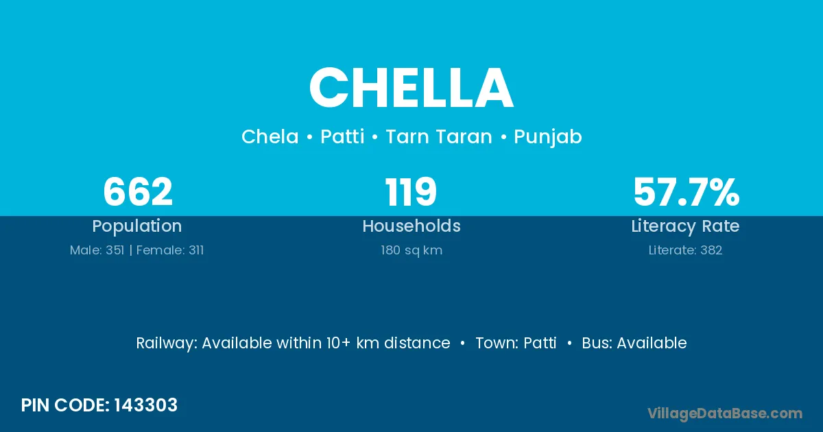 Chella village has a total population of 455 people, of which 229 are males and 226 are females.