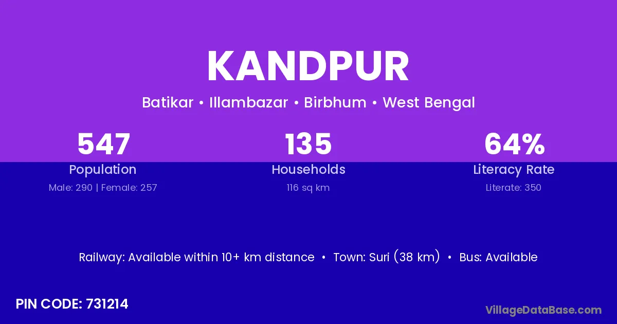 Suri (38 km) is the nearest town to Kandpur village for major economic activities and is located approximately 38 km away.
