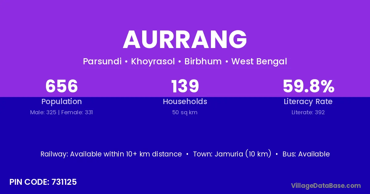 According to Census 2011 information, the village code of Aurrang village is 731125.