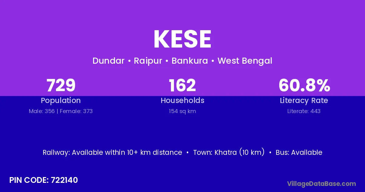 Dubrajpur (10 km) is the nearest town to Kese village for major economic activities and is located approximately 10 km away.