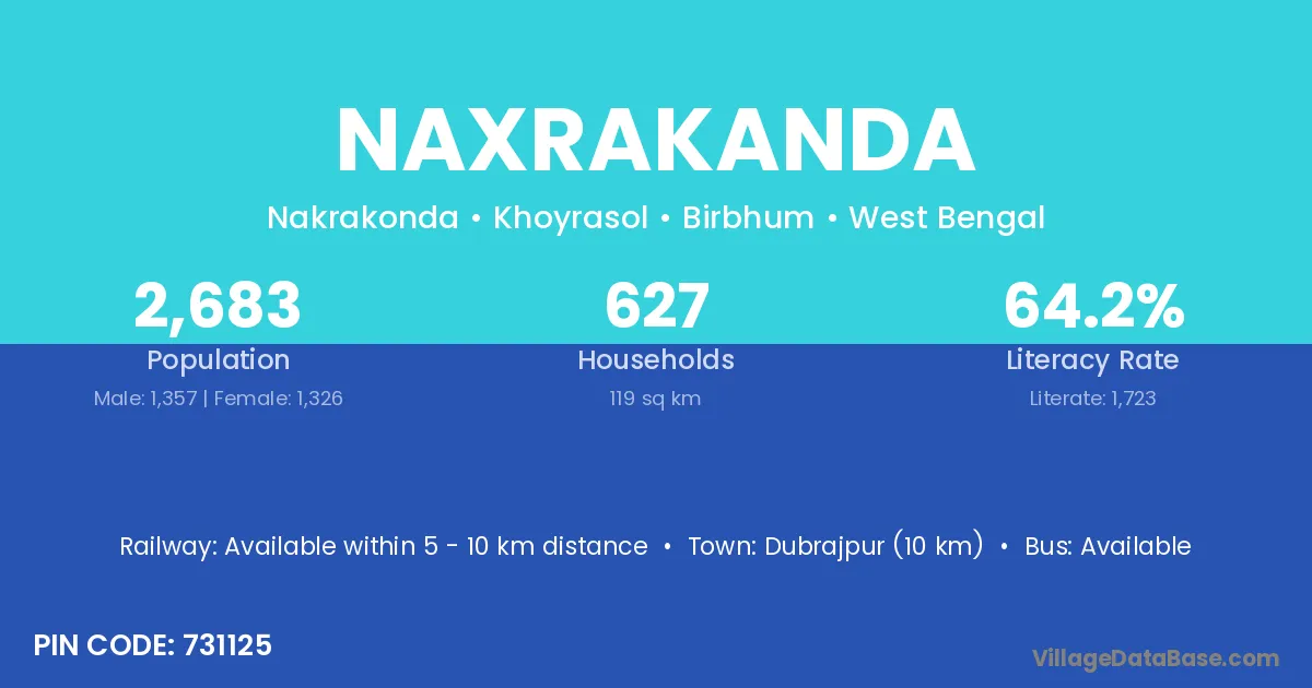Dubrajpur (10 km) is the nearest town to Naxrakanda village for major economic activities and is located approximately 10 km away.