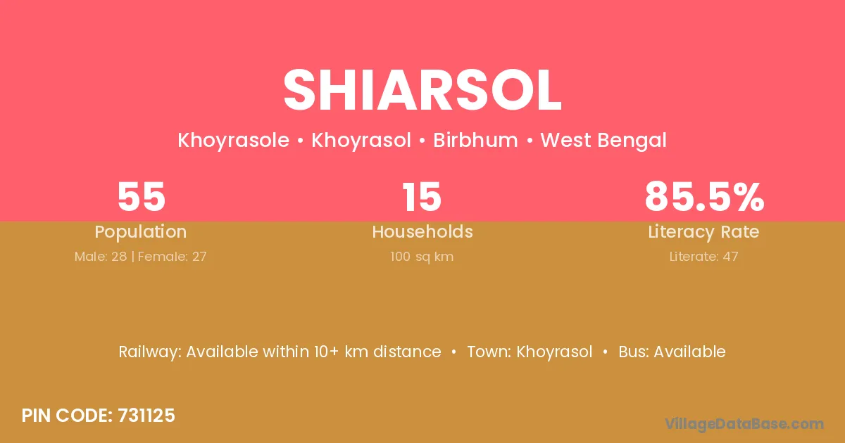 Shiarsol village has a total population of 55 people, of which 28 are males and 27 are females.