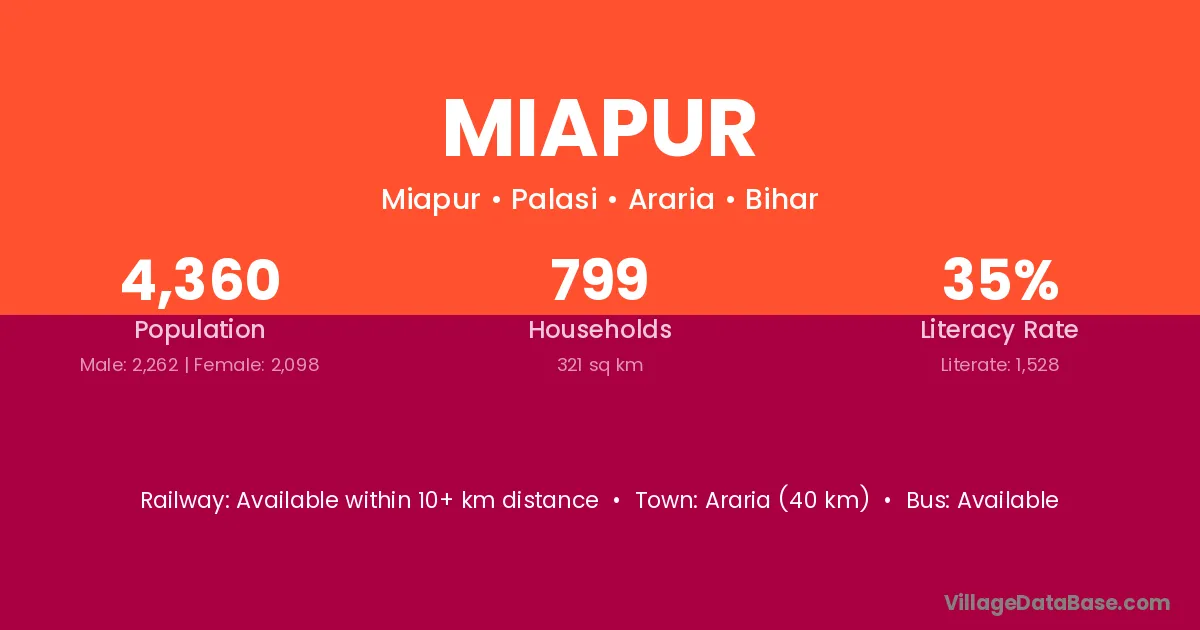Bolpur (45 km) is the nearest town to Miapur village for major economic activities and is located approximately 45 km away.